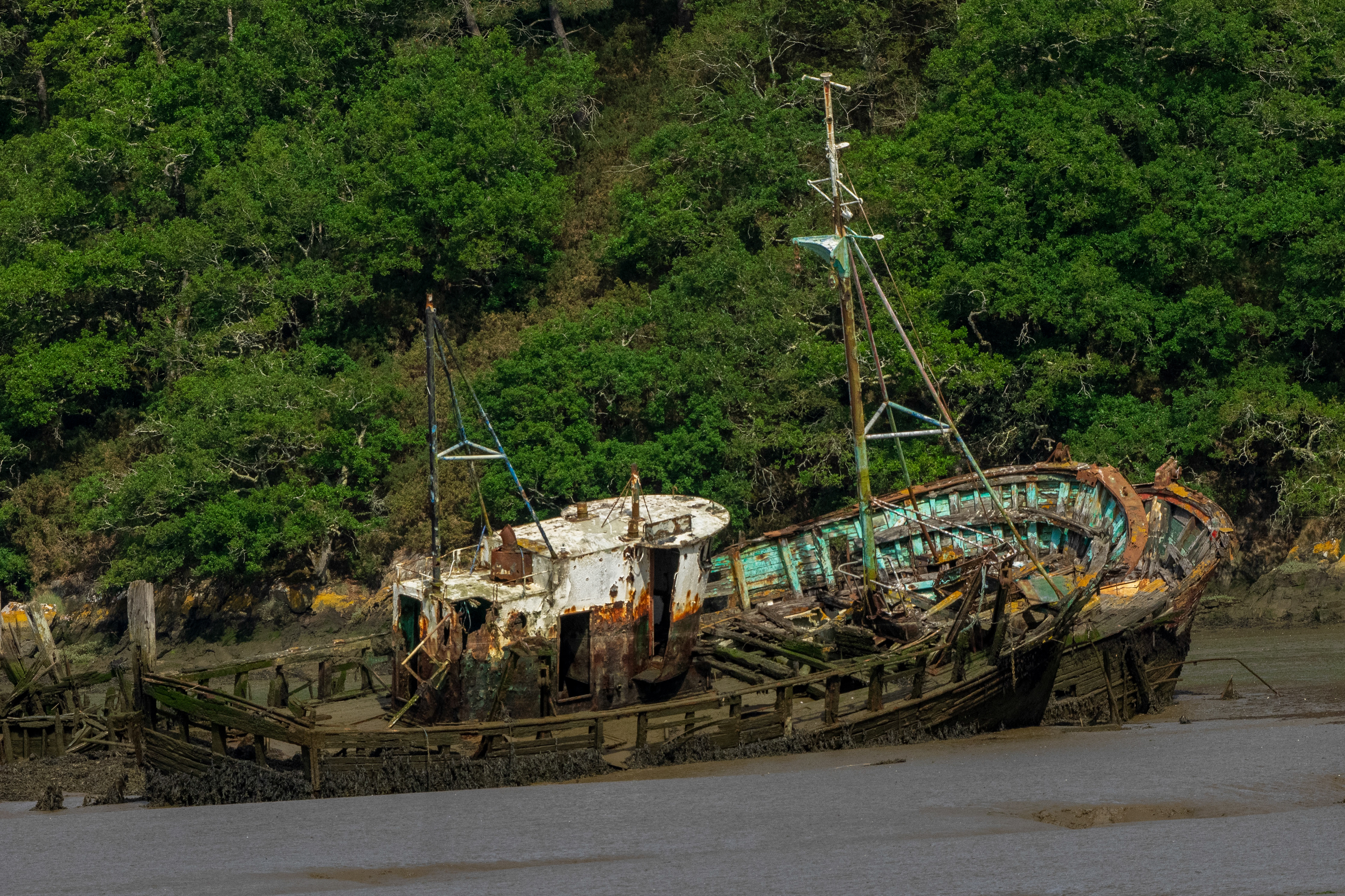 Navires ou simples chaloupes, ils finissent leur vie dans des cimetières de bateaux. Tous ont été photographiés en Bretagne, à Port Diben, Douarnenez, Lanester et Le Magouër.
